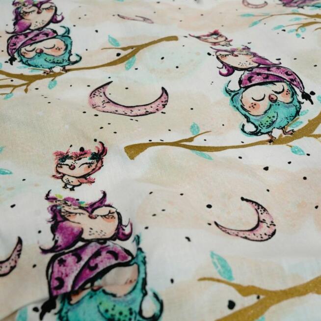 Bawełniany worek dziecięcy w sowy na gałązkach Bawełniany worek do przedszkola z motywem sów na gałązkach to lekki i ...