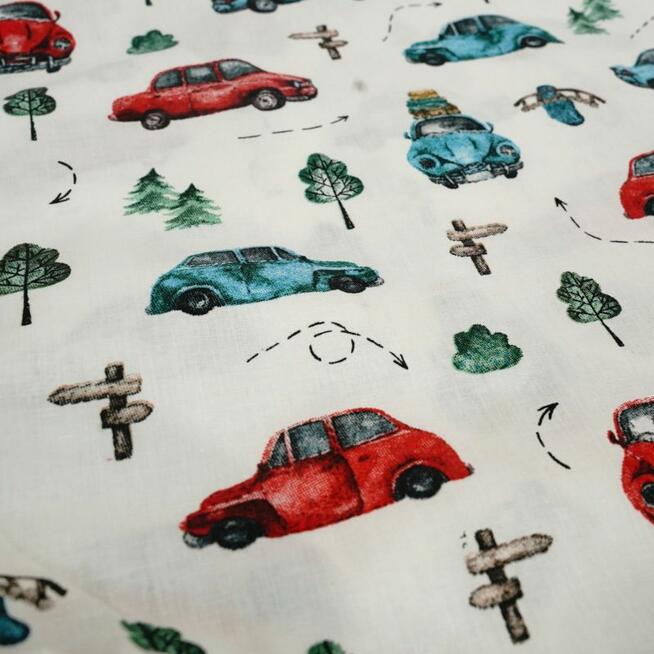 Bawełniany worek dziecięcy z motywem samochodzików Bawełniany worek do przedszkola z motywem samochodów na leśnej ...