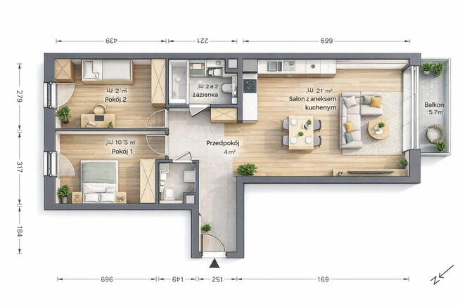 Wyjątkowe 3-pokojowe mieszkanie 57 m² - gotowe do zamieszkania! Osiedle Wojska Polskiego, ul. I AWP Na sprzedaż ...
